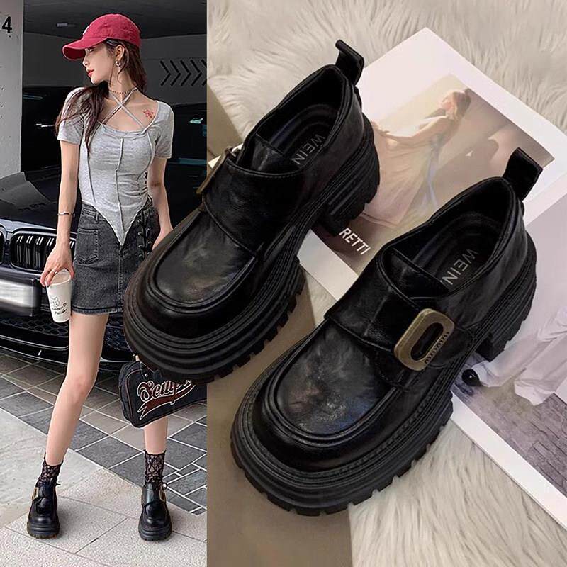 香港厚底粗跟英伦风小皮鞋女2025春秋百搭增高真皮包鞋休闲乐福鞋