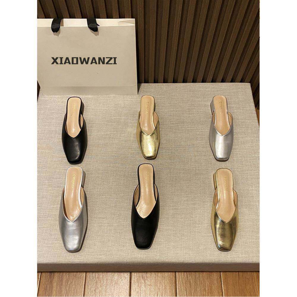 小土豆单鞋丑萌大头真皮包头拖鞋懒人浅口一脚蹬乐福鞋穆勒鞋半拖