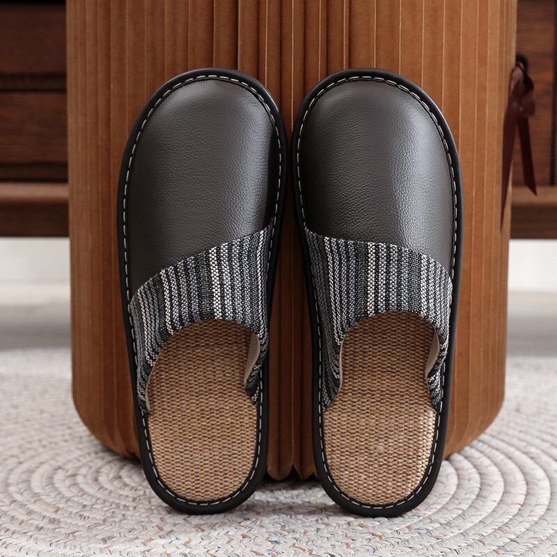 牛货推荐入 整张牛皮切割一脚蹬真皮包头情侣家居拖鞋秋冬季1106