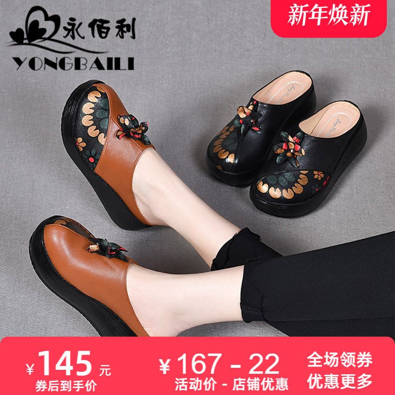 工厂特价真皮包头厚底半拖鞋女春夏百搭懒人包头拖休闲外穿勃肯鞋