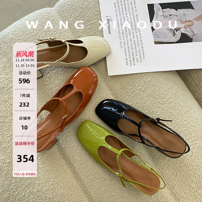 原创【王小毒】繁花•夏绿○5.5cm真皮包头凉鞋女T字复古玛丽珍鞋
