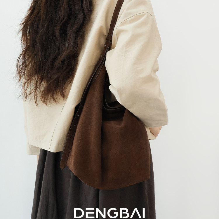 MER&JUILLET汝野新款麂皮包大容量通勤单肩包手提腋下流浪水桶包