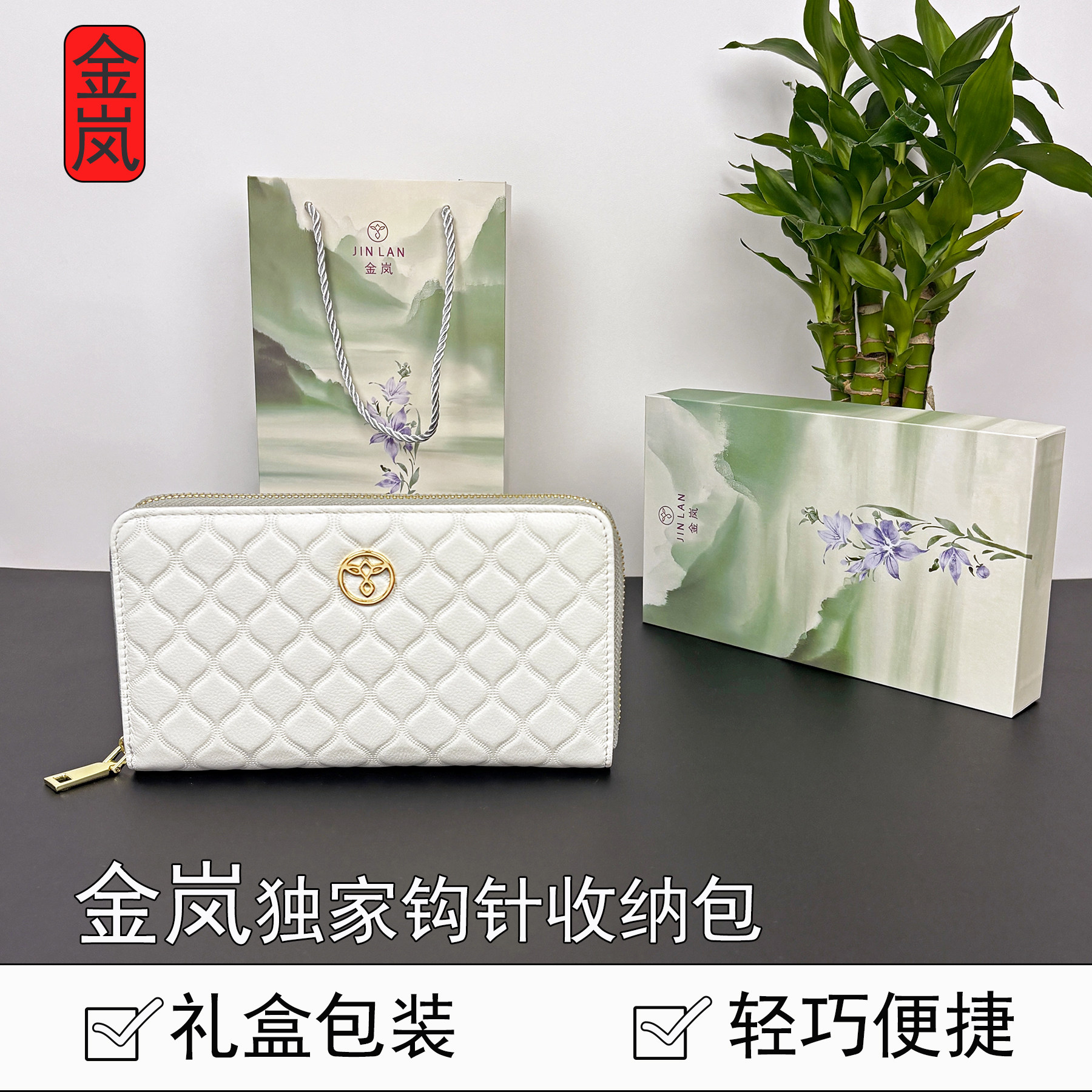 金岚钩针收纳包白色小皮包高端优雅DIY编织工具收纳袋小号便捷