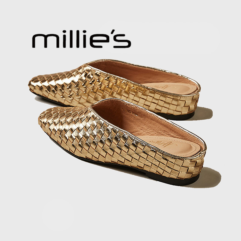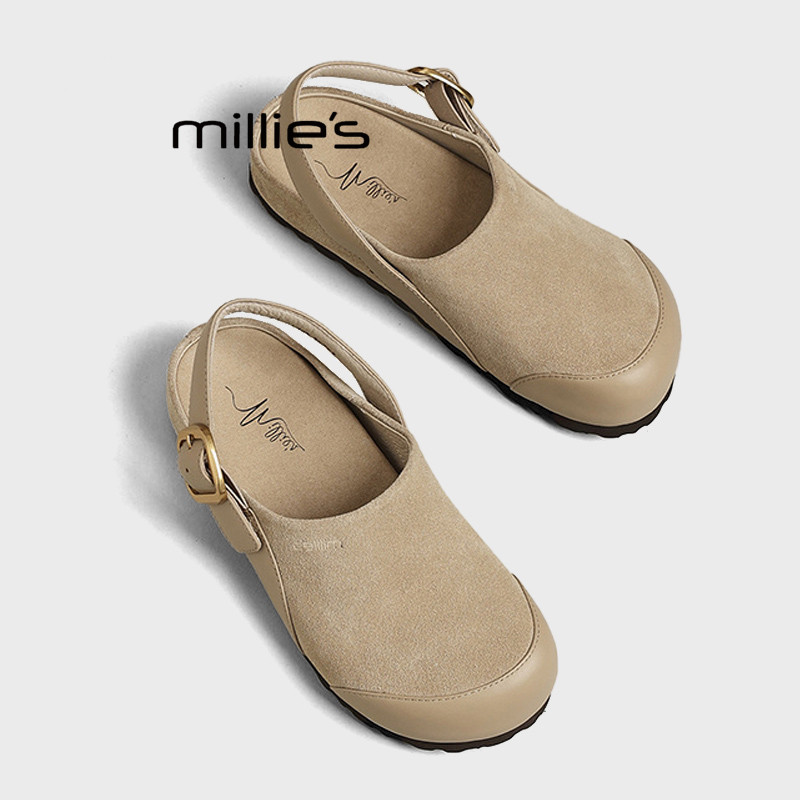 MILLIE'S/妙丽休闲博肯鞋真皮包头凉拖鞋春款圆头懒人一脚蹬拖鞋Q