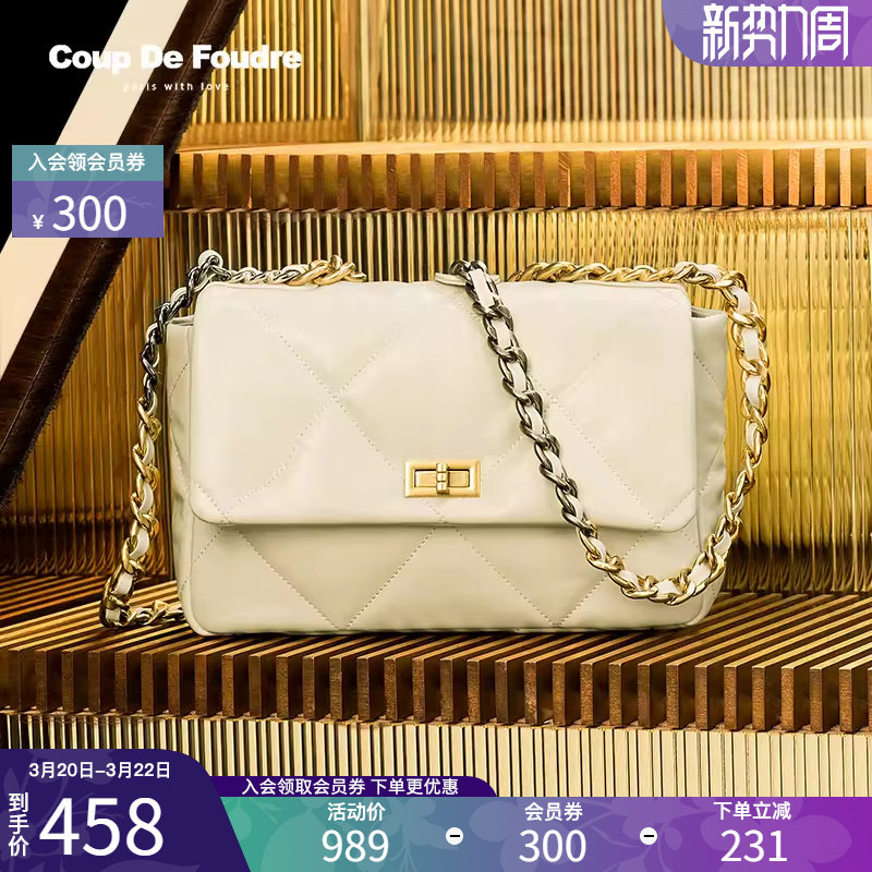 CDF轻奢时尚夏季新款百搭真皮包包链条包女包单肩包斜跨包小方包