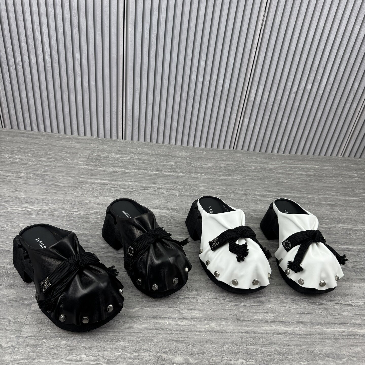 真皮包头半拖鞋女外穿2025春夏季新款厚底单鞋高跟鞋穆勒凉拖女鞋