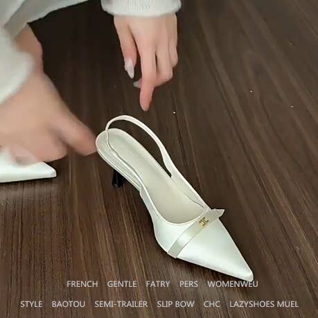 羊皮版!复古金属扣尖头高跟鞋女一脚蹬细跟单鞋百搭真皮包头凉鞋