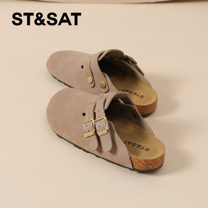 星期六厚底勃肯鞋女2025新款夏季透气真皮包头半拖鞋一脚蹬穆勒鞋