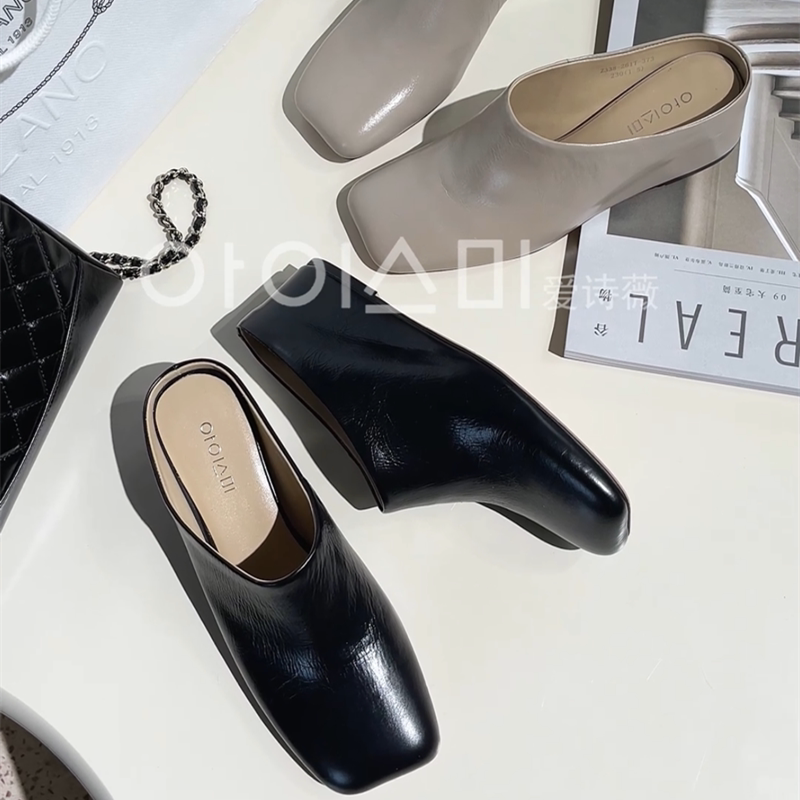 爱诗薇女鞋2026夏季新款穆勒鞋真皮包头拖鞋坡跟厚底半拖方头半拖
