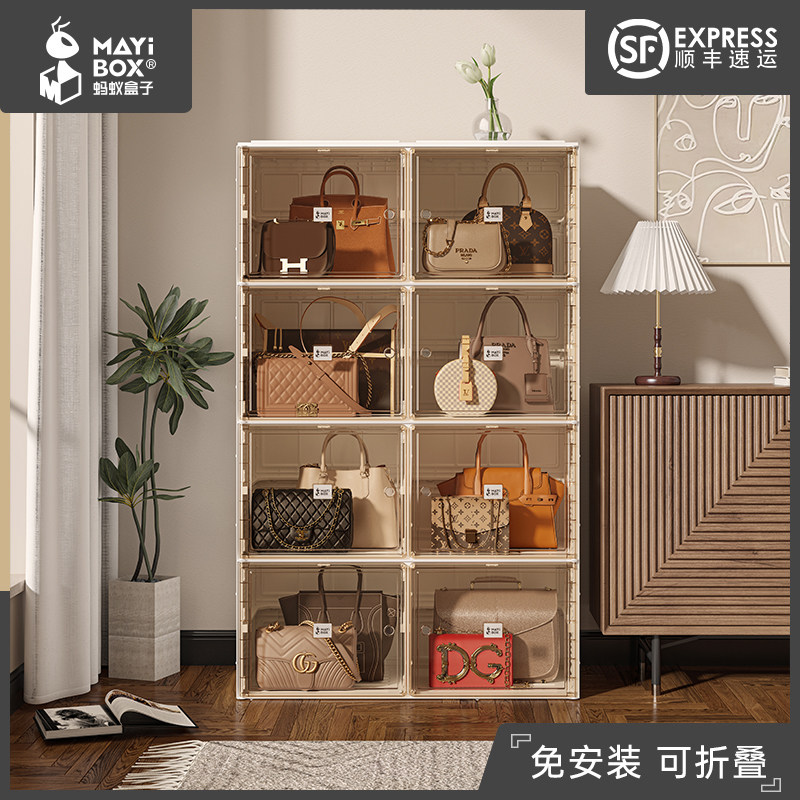 速发蚂柜盒子收纳蚁神器落地免安装放物置架存放皮包展示柜