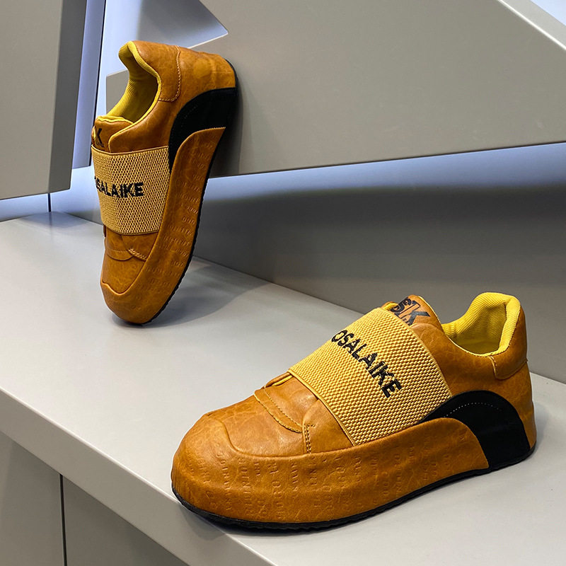 欧洲站男鞋2025秋季新款牛皮厚底休闲板鞋男时尚潮流皮包底袋鼠鞋