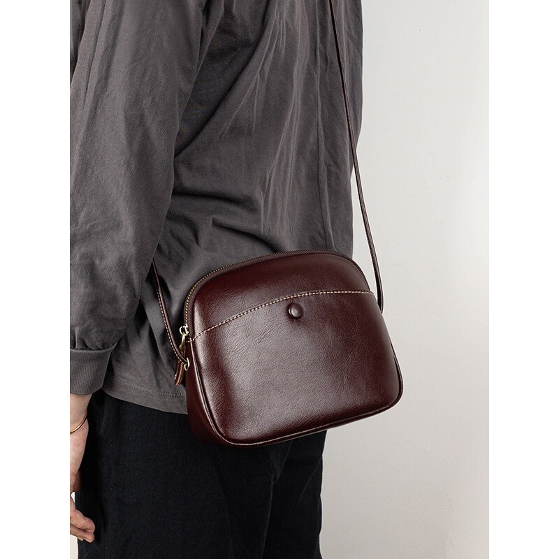 2026新款时尚手提百搭真皮油蜡皮高级感单肩斜挎休闲通勤女皮包