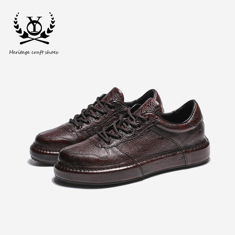 轻奢真皮手工男鞋新款固特异皮包底男潮鞋头层牛皮内增高休闲皮鞋