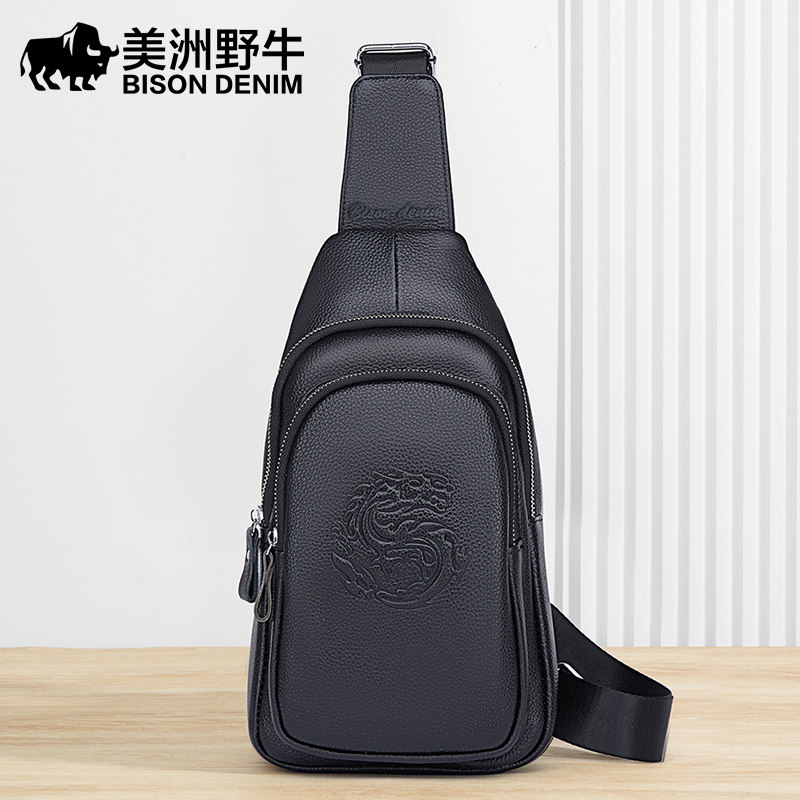 美洲野牛胸包男真皮包休闲旅行背包头层牛皮斜挎包韩版潮流单肩包