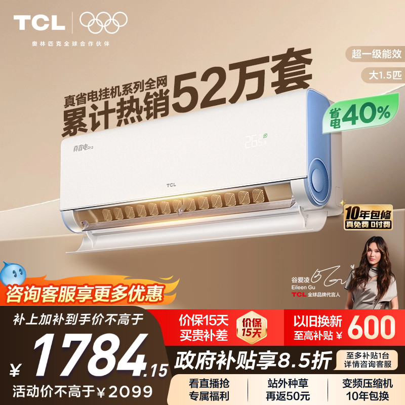 TCL 大1.5匹小蓝翼真省电Pro空调挂机超一级能效省电40%变频空调