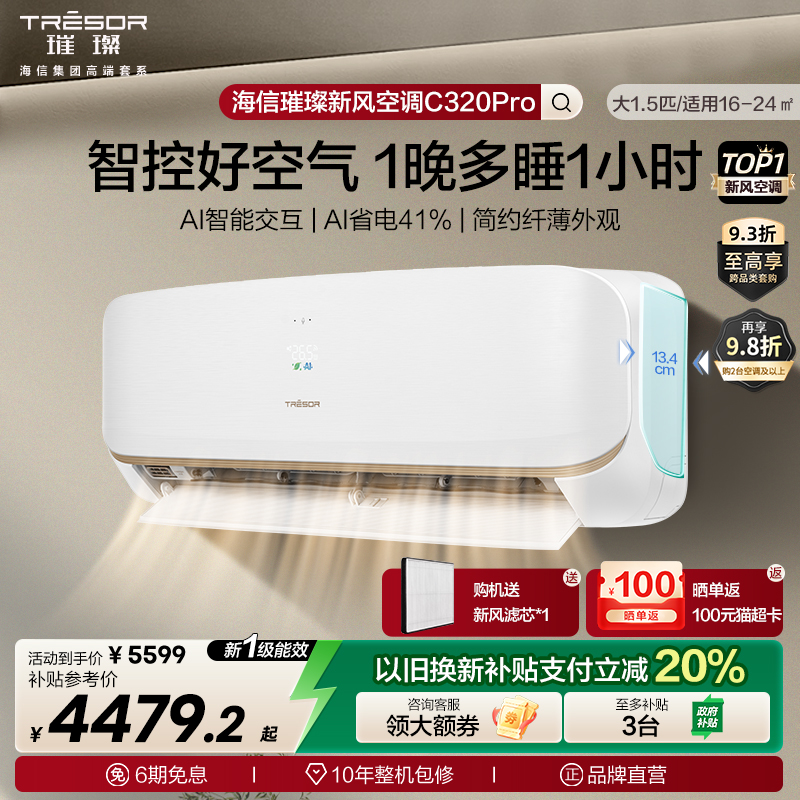 海信璀璨空调大1.5匹C320Pro挂机一级能效家用以旧换新补贴