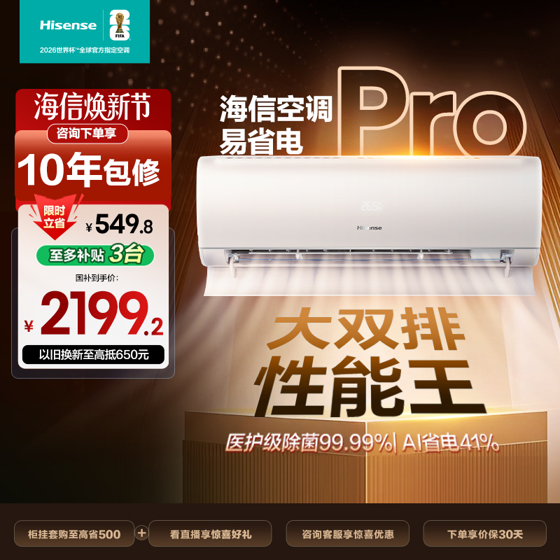 海信新风空调深睡宝X3Plus大1匹一级能效变频卧室家用挂机补贴