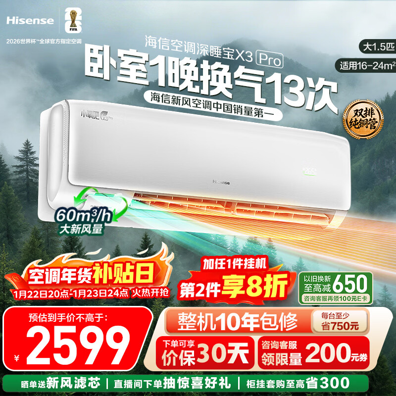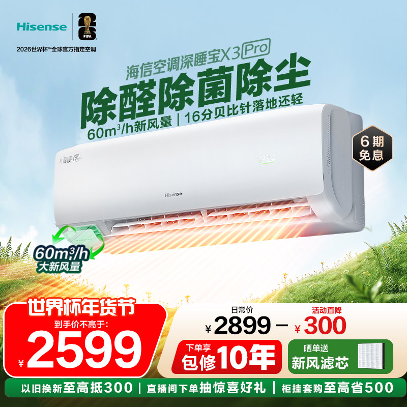海信新风空调深睡宝X3Pro 大1.5匹 增氧新风 AI省电 双排铜管 1级能效挂机KFR-35GW/X300Pro-X1