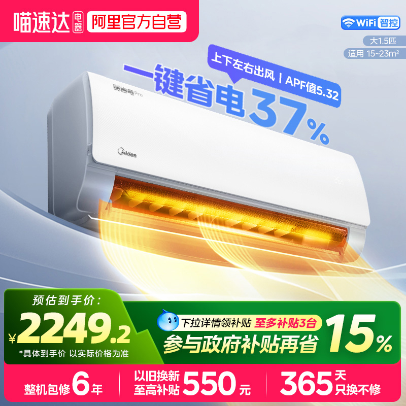 美的空调酷省电pro1.5匹挂机家用一级能效卧室官方正品变频冷暖