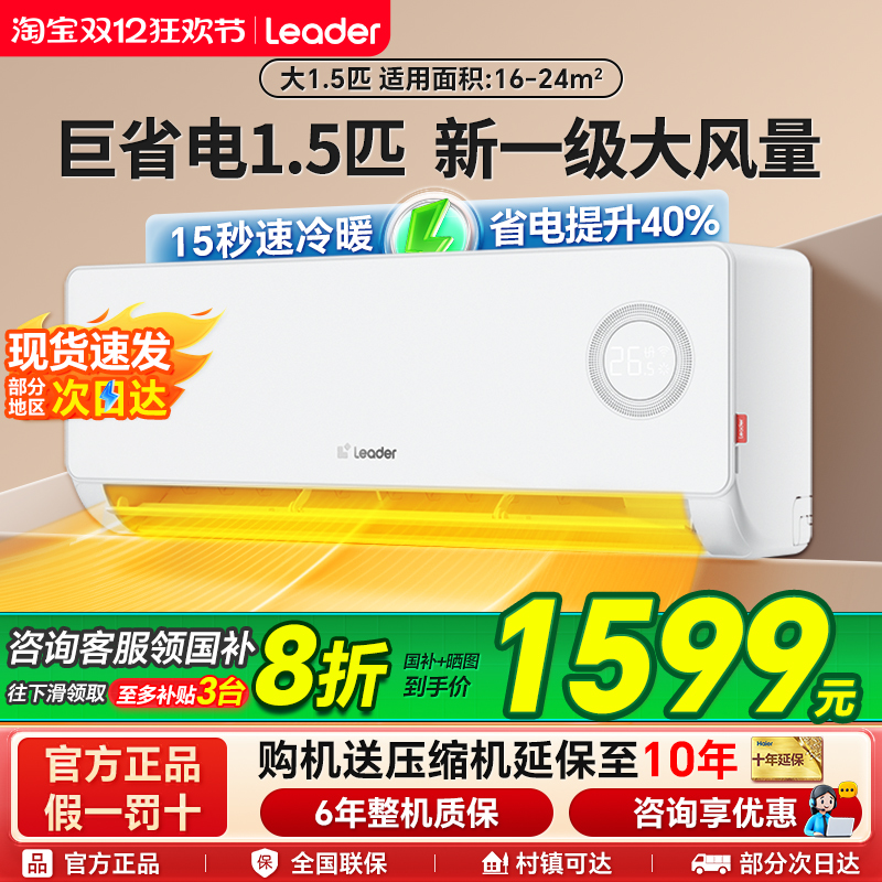 统帅(Leader)海尔出品空调挂机1.5匹变频室内 国家补贴 1级能效 冷暖两用新风节能省电超省电大风量以旧换新 超省电 【海尔出品】爆款热销 1.5匹 35LA1