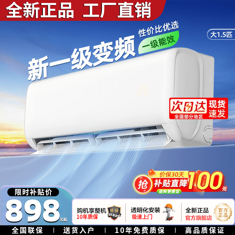 【特惠国补】一级变频挂机空调大1.5/2匹家用冷暖卧室1匹单冷静音