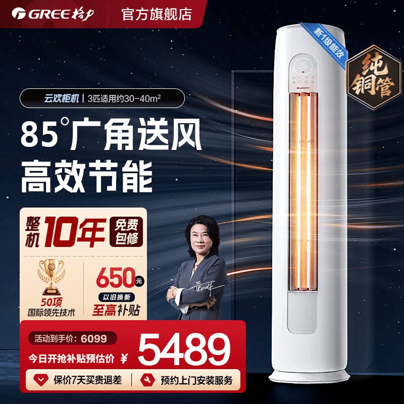 【政府补贴】格力空调新一级能效变频冷暖3匹柜机云欢官方旗舰店