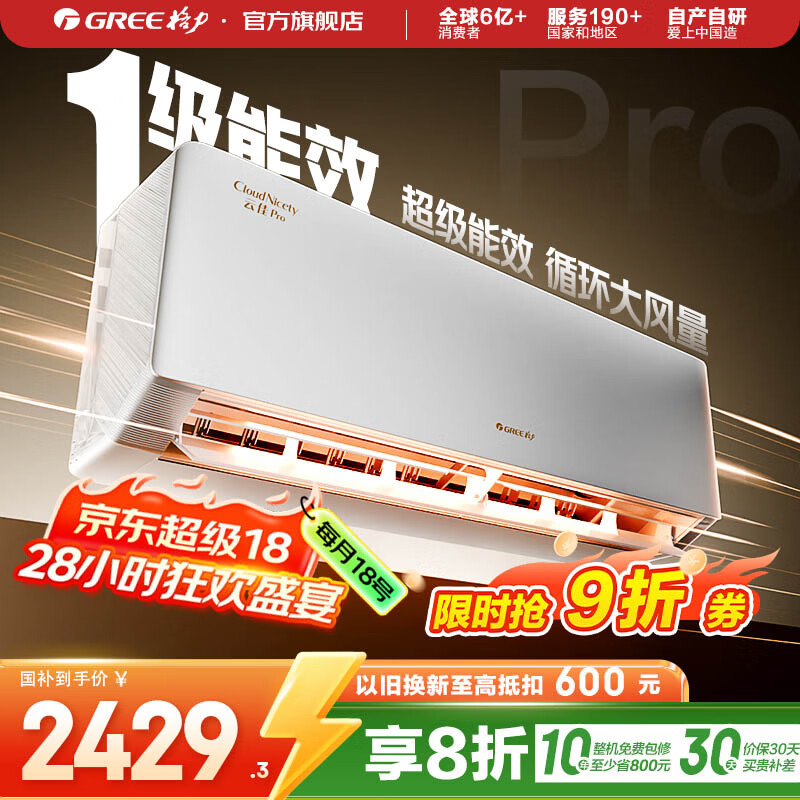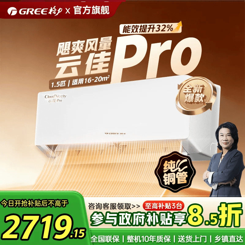 格力空调 1.5匹/大1匹 云佳Pro/云佳 新能效 变频冷暖 自清洁 壁挂式 卧室空调挂机 家电补贴 以旧换新 云佳Pro 新一级能效 1.5匹 新品上市