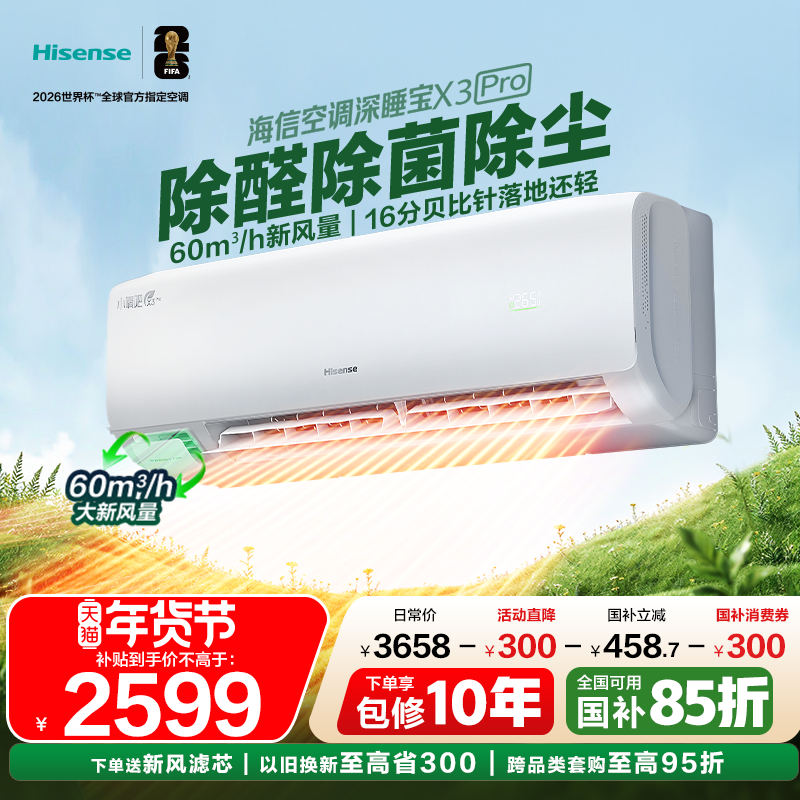 海信新风空调深睡宝X3Plus大1.5匹一级能效变频冷暖家用挂机