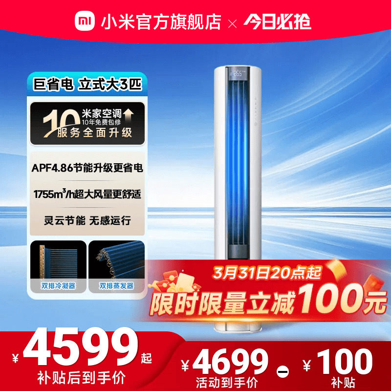 [懒人神机Pro-AI之眼]海尔出品统帅立式空调双排3匹一级客厅新品