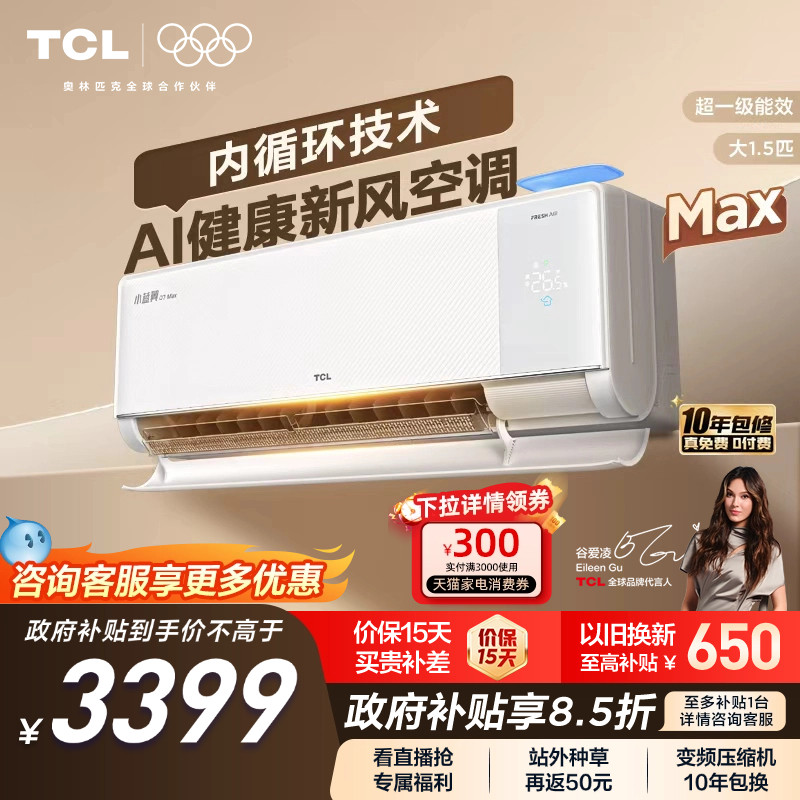 【政府补贴】TCL新风空调大1.5匹新一级小蓝翼Q7冷暖柔风挂机变频