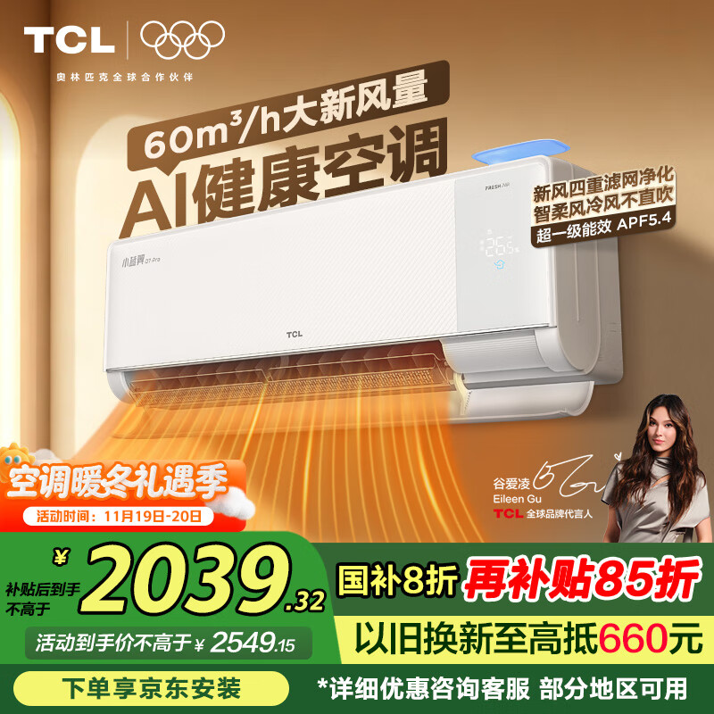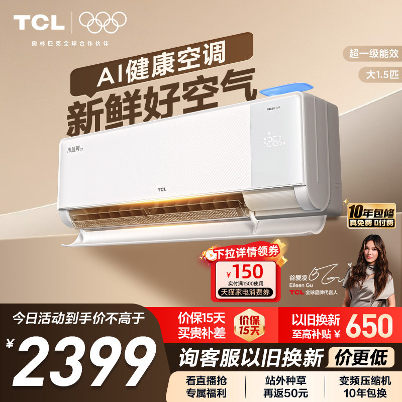 【新品】TCL新风空调大1.5匹新一级小蓝翼Q7冷暖柔风挂机变频家用