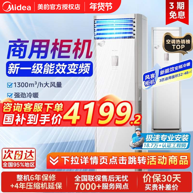 美的3匹立式空调一级能效冷暖变频家用柜机客厅商铺方柜风客官方
