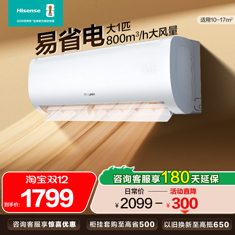海信大1匹易省电E370空调家用挂机式一级能效卧室以旧换新补贴