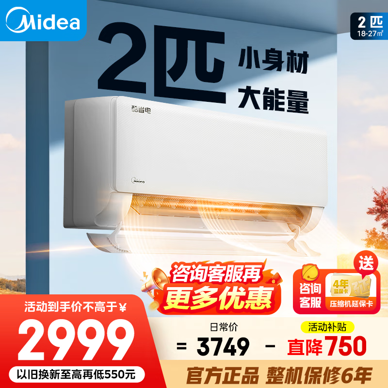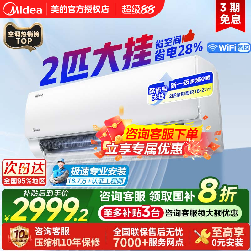 美的(Midea)酷省电 2匹 空调挂机新一级能效变频冷暖壁挂式 卧室防直吹省电 智能家电以旧换新国家政府补贴20% 2匹 一级能效 【酷省电】节能28%