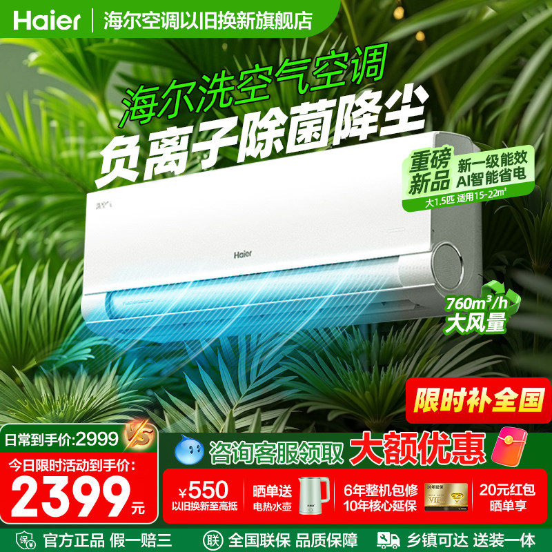 【国补省15%】海尔空调1.5匹家用一级能效变频卧室挂机冷暖旗舰店