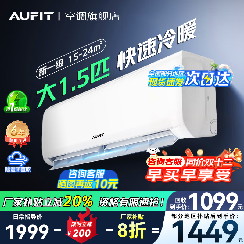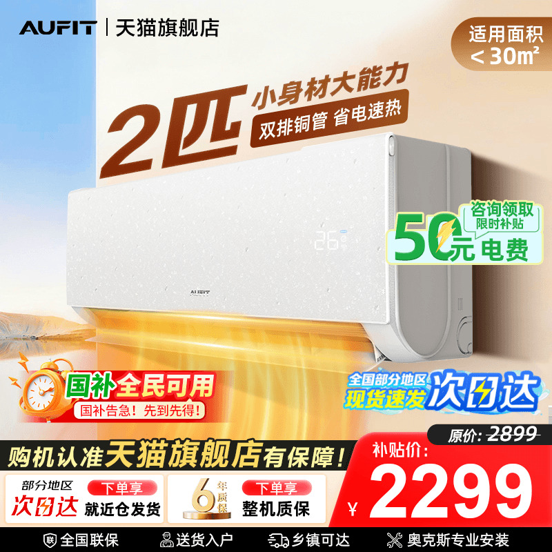 AUFIT空调2匹挂机智能一级能效冷暖1.5P家用1匹变频天猫旗舰
