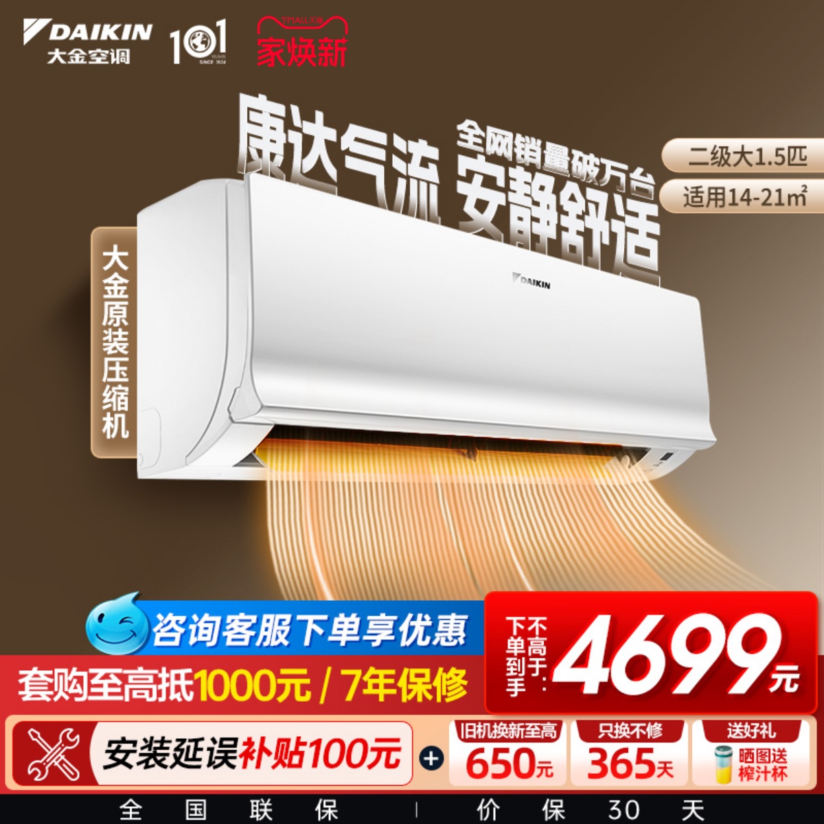 大金空调官旗全直流变频大1.5匹家用静音康达气流挂机S236白色