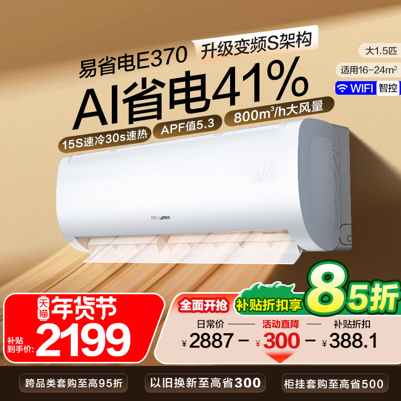 海信空调大1.5匹1匹易省电家用挂机一级以旧换新补贴官方旗舰店