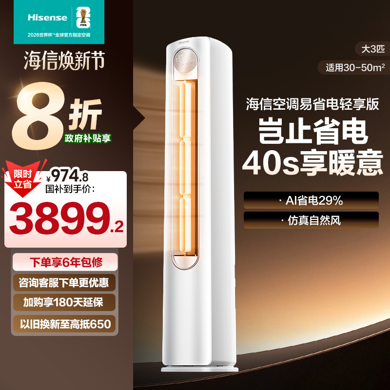 海信空调易省电轻享版大3匹柜机立式家用一级能效变频换新补贴