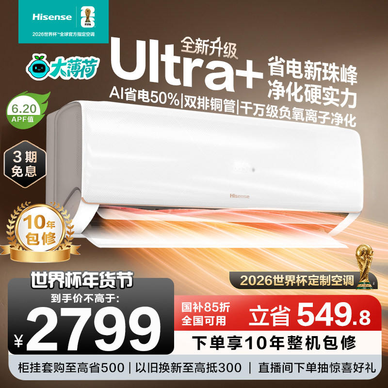 世界杯定制空调海信大薄荷智省电Ultra大1.5匹家用挂机一级能效