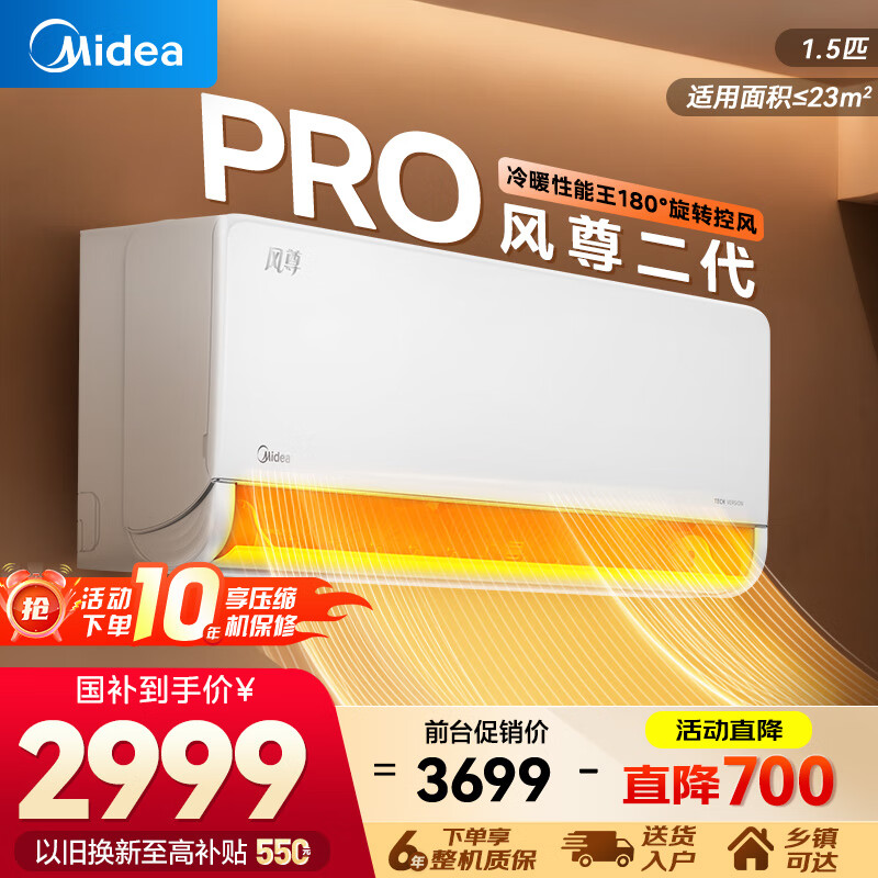 美的(Midea)空调挂机【国家补贴20%】风尊二代pro 一级能效 变频冷暖智能控温独立除湿 家用空调以旧换新 1.5匹 一级能效 风尊二代PRO