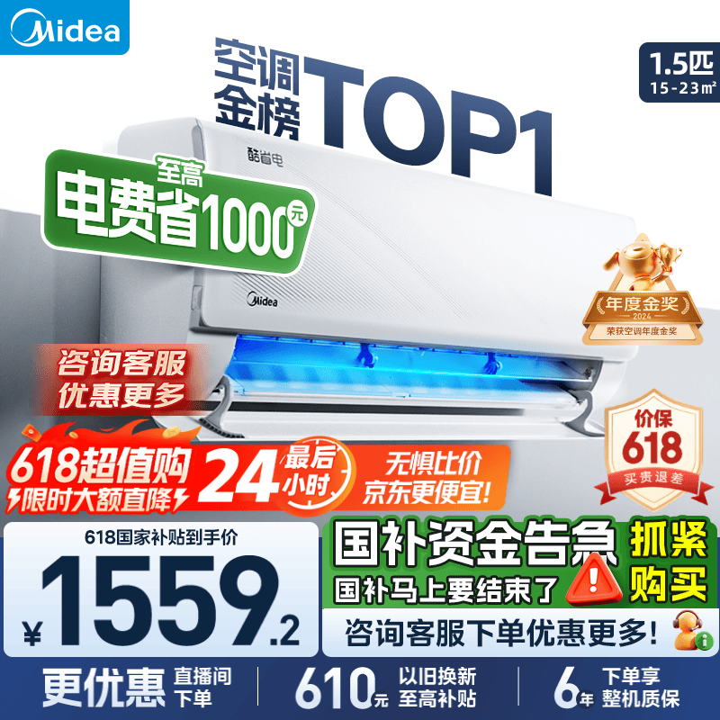美的空调 爆款推荐 酷省电 新一级能效 变频冷暖 家电国家补贴入口 节能省电家用卧室挂机 以旧换新 酷省电2025版 大1.5匹 省电25%