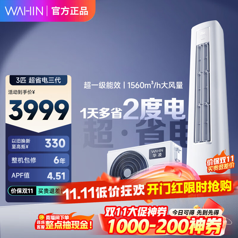 华凌空调1.5匹 新一级能效 超省电Pro 【国家补贴20%】变频冷暖卧室挂机大风口家电以旧换新35HA1III-p 1.5匹 一级能效 35HA1III-p