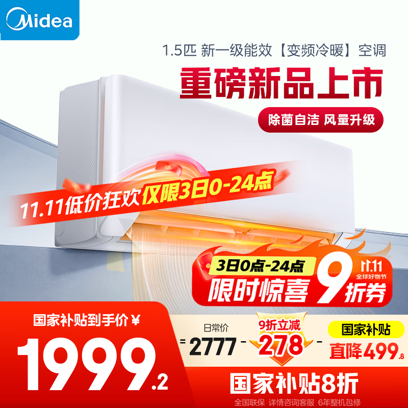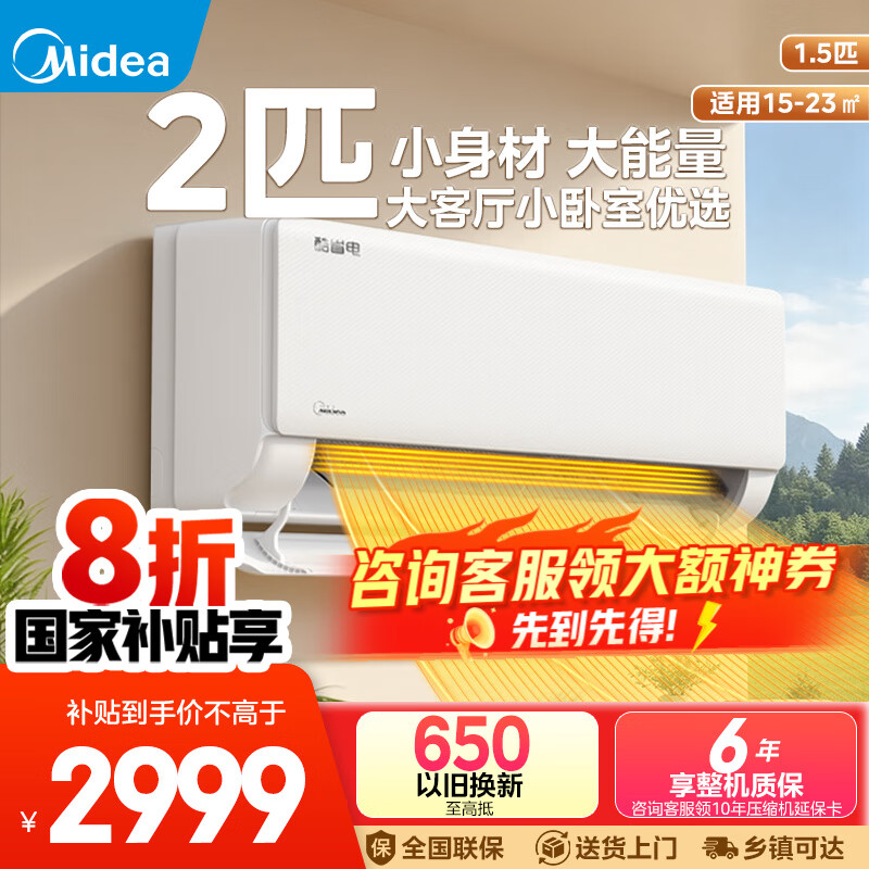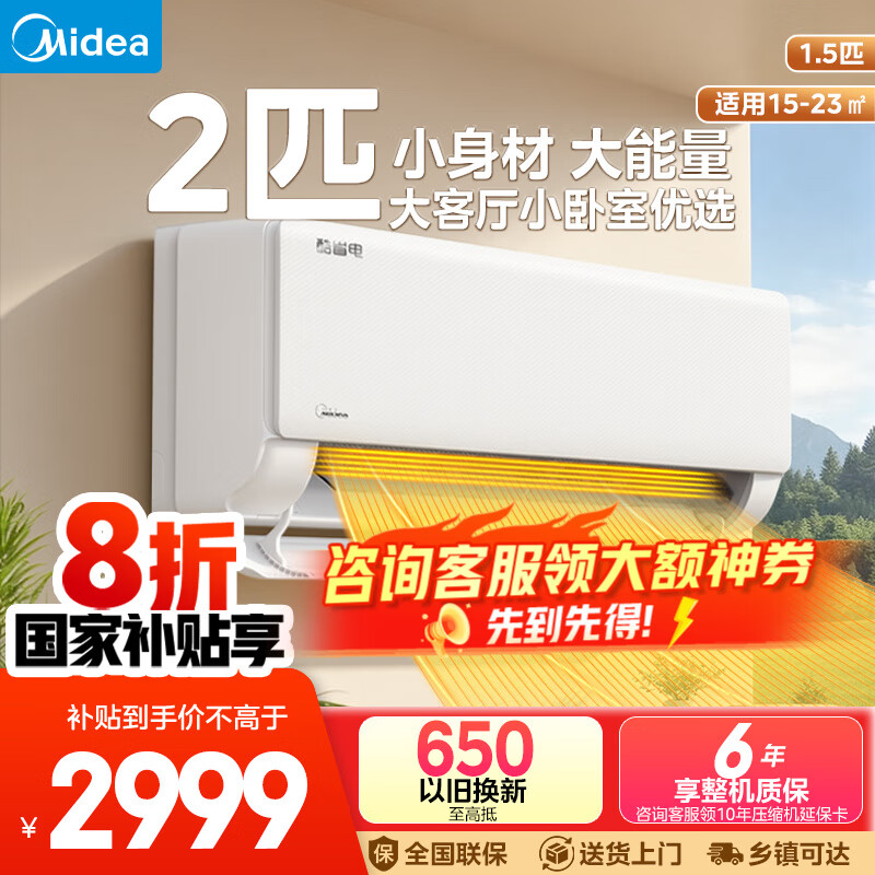 美的空调 爆款推荐 酷省电 新一级能效 变频冷暖 家电国家补贴入口 节能省电家用卧室挂机 以旧换新 大1.5匹 一级能效 酷省电 省电25%