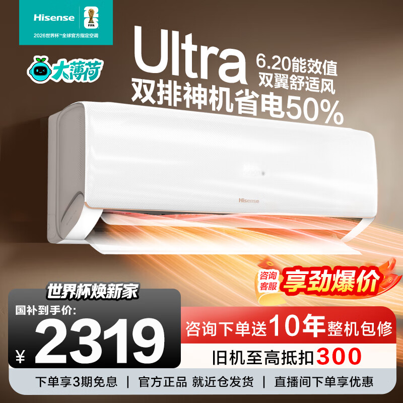 海信(Hisense)大薄荷空调 大1.5匹挂机 询单优惠 智省电Ultra 新一级 双翼定制风 内外机双排倍省电 APF高达6.2 智省电 大1.5匹 【Ultra】大双排满配倍省电