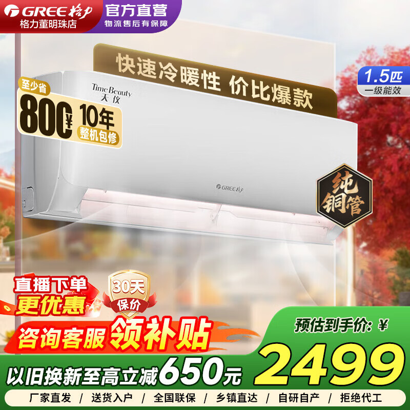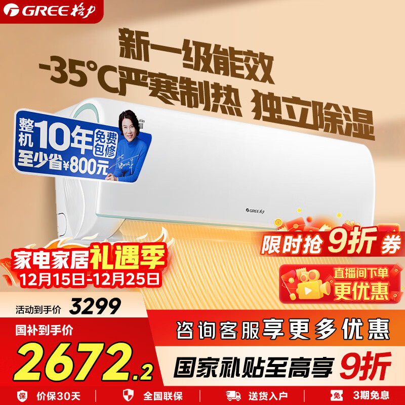 gree格力空调政府补贴大1.5匹一级能效挂机变频冷暖卧室云欢官方