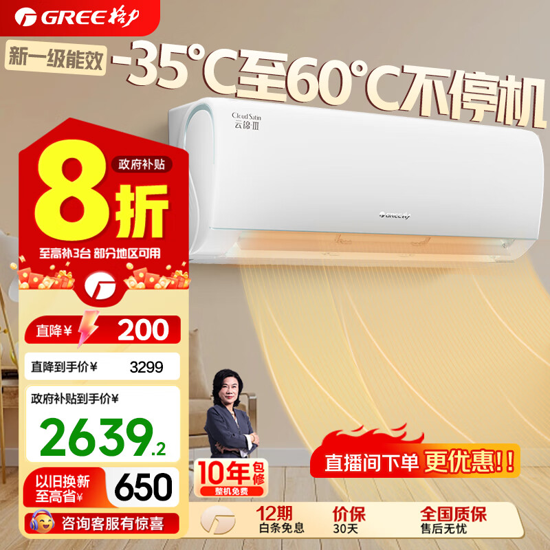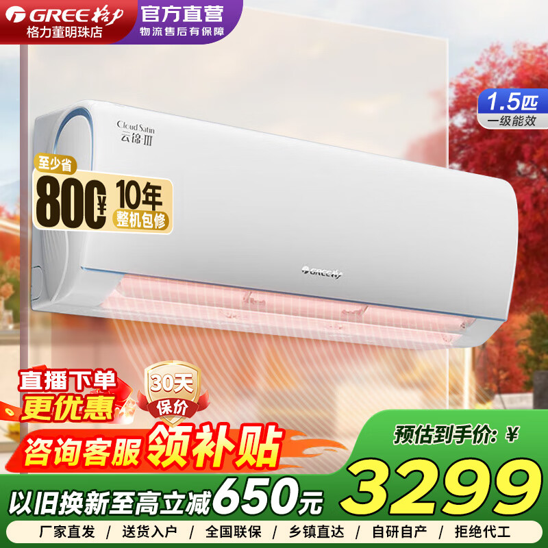 格力(GREE)空调云锦三代1.5匹新一级能效省电变频冷暖 自清洁 智能壁式卧室挂机【冷酷外机】国家补贴20%空调 1.5匹 一级能效 云锦Ⅲ 冷酷外机旗舰款