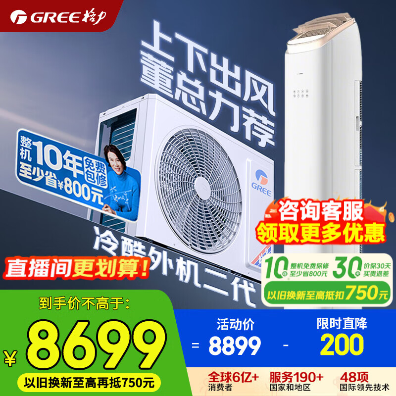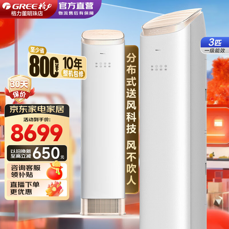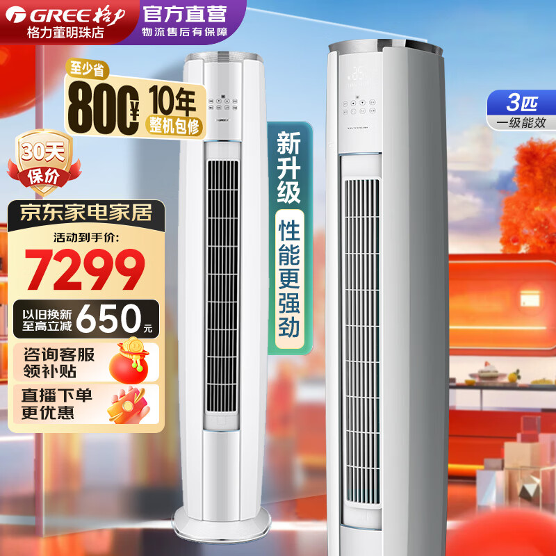 格力(GREE)空调3匹柜机 王者/京致 新一级能效 独特上下送风防直吹 变频冷暖客厅节能立柜式 国家补贴20% 3匹 一级能效 【王者】上下出风 恒温舒适 格力
