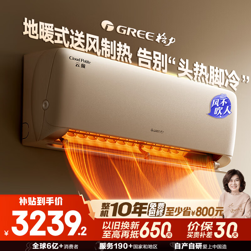 格力(GREE)云佩 1.5匹新1级能效变频挂机 双排铜管外机恒暖除霜风不吹人卧室空调 国家补贴KFR-35GW/NhAh1BAj