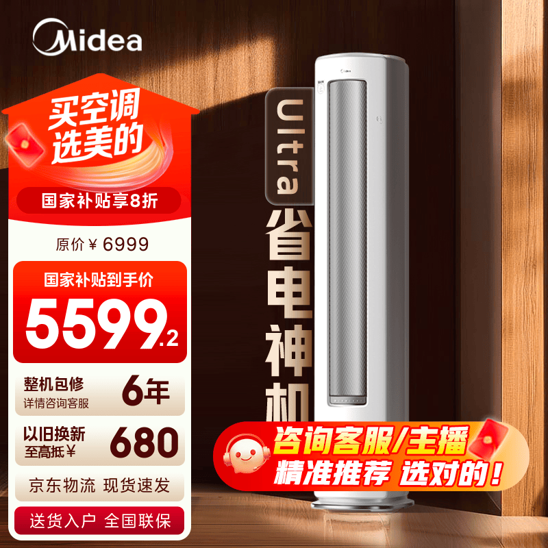 美的空调 酷省电Ultra 新一级能效 AI酷省电技术 客厅立式柜机 变频冷暖 国家补贴 以旧换新 3匹 一级能效 酷省电Ultra